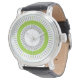 A watch face with a concentric circles design, in which rays are arranged to mark the minutes and hours in the outer circle. This version has a solid coloured first inner circle and the second inner ring has minute rays. All the rays line up correctly and the hours are marked with a bolder line in the outer circle providing both a decorative but practical clock face.