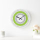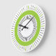 A clock face with a concentric circles design, in which rays are arranged to mark the minutes and hours in the outer circle. This version has a solid coloured first inner circle and the second inner ring has minute rays. All the rays line up correctly and the hours are marked with a bolder coloured line in the outer circle providing both a decorative but practical clock face.