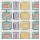 This fabric has a mid-century modern design of concentric rectangles in retro colours.