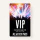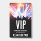 Concert Ticket All Access Special Event VIP Badge. Great for concerts, large special events like conferences, speakers, and can even work for a birthday party. Features an event or concert venue with people holding their hands in the air. In the background is a vibrant mix of pinks, purples, yellows, oranges, and blues from the concert lights, creating a colourful and energetic vibe. At the bottom is a bold font with VIP, the event name, date, and 'All Access Pass'. You can change all of the text information and font colours of this badge. It can also work for staff, artists, press, and more. You can even use a different photo if you want, but it may not fade to black as well at the bottom.