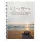 Guestbook for a memorial service or funeral featuring the sun rising over a conch lying on the sandy beach. In loving memory is written in a lovely calligraphy font above your loved one's name and dates living.