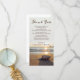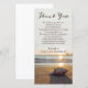 Beautiful thank you card for a memorial service featuring the sun rising over a conch lying on the sandy beach.