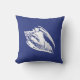 Digitally enhanced, mixed media vintage illustration of a Conch shell - navy / indigo blue and white outdoor pillow
