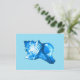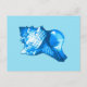 Digital rendition of a conch shell - shades of deep cobalt blue to sky blue with white against a light sky blue background
