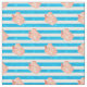 A nautical summer beach pattern of conch seashells on a coastal blue strip background.