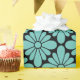 This fun and modern pattern is reminiscent of silver concho flower designs often seen on belts and jewellery in the American Southwest. Pattern features aqua diamond shaped flowers on black background