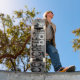 Barrel X Skateboard design with concrete background and text that reads "Concrete barrel". Various skateboarding poses placed throughout design.