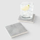 The coasters are gorgeous, a quality feel and heavy weight. They look like a precious archeological find. A rustic stone juxtaposed with a modern floral black and white print. I like the way the print goes slightly imperfect on the cut stone edges giving them a kind-of natural beauty.