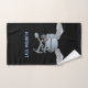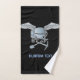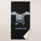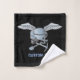 Concrete mixer blue-grey with wings, pickaxe and shovel. Custom text.