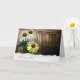 Yellow cone flowers with old wooden bushel basket with torn edge border for thank you.