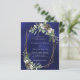 For a winter wedding. A navy blue, uneven coloured background decorated with cones, white berries and greenry. A faux gold geometric frame. Personalise and add your names and details.
