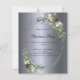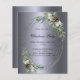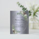 A faux silver looking background decorated with cones, white berries and greenry. An oval frame. Personalise and add the details.