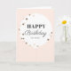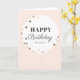 A fun, modern happy birthday greeting card featuring a big round blush pink and gold confetti filled balloon with a whimsical mix of editable fonts. Perfect for all ages.