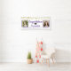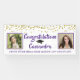 Gold confetti and CONGRATULATIONS (graduate's name) in a brush script font in purple. The purple text font and purple photo frames can be changed to a colour to coordinate with school colours or your graduation party colour scheme or decor. Honour and celebrate the graduate and welcome party guests with this banner sign featuring THEN and NOW photos of the graduate (or any two photos) for a young man or woman. Personalise it with their name, school and graduation year or whatever text you desire. PHOTO TIP: For fastest/best results, choose a photo with the subject in the middle and/or pre-crop it to a square shape BEFORE uploading and it will fill in the photo space provided perfectly. Contact the designer if you’d like this design modified, on another product or would like coordinating items to complete your party ensemble.