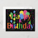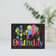 Confetti, Party Hats and Balloons Black Background Invitation Postcard