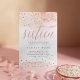 Chic sweet sixteen invitations in blush pink and grey feature sheer washes of blush pink watercolor at the top and bottom with faux gold glitter and "sixteen" in pink watercolor calligraphy lettering. Personalise with your sweet 16 birthday party details beneath in elegant grey.