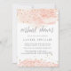 Chic bridal or baby shower invitations for virtual celebrations feature sheer washes of blush pink watercolor at the top and bottom with faux gold glitter and "bridal shower" in calligraphy script lettering. Personalise with your virtual baby or bridal shower details beneath in elegant grey, including registry, mailing address, and virtual gathering info (link or instructions on how to join).