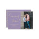 Gold Confetti on Light Purple Custom Photo Pregnancy Announcement Cards. Expecting parents! Modern hand lettered typography "coming soon" script card to share your happy news with friends and family. Features above and the bottom gold confetti frame on light lavender purple colour background. You can personalise the design by replacing the simple texts and vertical photo. If you need help or matching items, please contact to me! #3351