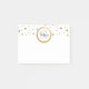 Add your custom name and initial to this pretty, light airy and feminine gold and silver confetti background print pattern design. Circular round shape with a faux gold leaf border and your single letter initial and name.