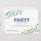 This colorful party invitation features colorful confetti in shades of blue, green, turquoise and lime.