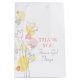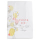 Show your appreciation to your flower girls or other wedding attendants with this thank you wedding favour gift bag. Perfect to fill with a large special gift to show your appreciation. Fashionable modern pastel shades of orange coral, yellow with classic warm grey. Matches keepsake wedding bags and cards. Customise / personalise these gift favour bags with your attendants title, name and a personal message or thanks. Currently reads Thank you Flower Girl Tanya. Uniquely designed by Sarah Trett.