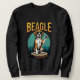 Confident Beagle on Tree Stump with Retro Style Sweatshirt