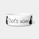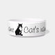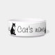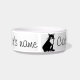 A confident black and white cat waits patiently to be fed in this simple graphic design with easy template to add your own cat's name.
