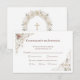 This elegant Confirmation of Assistance RSVP card features a delicate floral arch adorned with soft roses and greenery, framing a golden cross. The design evokes a sense of sacredness and celebration, perfect for guests attending a religious ceremony. The accompanying text prompts for essential details, ensuring an organized event. This beautiful response card will add a touch of grace to your special occasion, setting a warm and inviting tone for your guests.