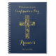 Notebook for confirmation with a gold cross on a dark blue background. Personalise name, date and text.