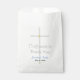 Elegant Confirmation son Thank You Paper Favour Bags with simple hand-painted Silver Cross with Gold Accents. Personalise name in blue script and date in black text against white background. Original Graphic Artwork and Design © TamiraZDesigns.