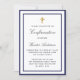 Confirmation boy royal blue white minimalist invitation