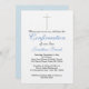 Elegant Confirmation Son Invitations with simple hand-painted silver cross with gold accents. Confirmation and Child's Name is written in cornflower blue script. Insert Date and details in black text. Backside has light blue grey background with with darker cross image and the wording Child of God in silver text. Click to Customise and Edit background colours. Original Artwork and Design by © 2018 TamiraZDesigns.
