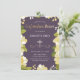 This modern and pretty confirmation invitation features an illustrated floral border and the word "Confirmation" in gold. The background is a purple (plum) colour, but can be customised to any colour you choose. The back of the invite includes a gold quatrefoil pattern with a matching purple background that can also be swapped out. The text is customisable for your special religious event.