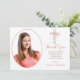 Confirmation Floral Cross Custom Girl Photo Thank You Card