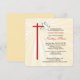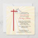 Beautiful invitation card for your daughter's Confirmation. Golden rays are shining behind a cross in red and a white dove. The red is the colour of Confirmation and the dove symbolises the Holy Spirit. Personalise the text to make it perfect for your needs for her Confirmation. The corners of this square card are rounded adding a cohesive element with the rounded edges of the cross.