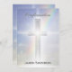 A streaming rainbow background with a light silver cross makes a beautiful confirmation or baptismal invitation.