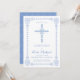 This elegant and classic confirmation invitation features a drawn cross of blues and white with a matching detailed border. Perfect for your special religious occasion, the text and background colour can be customised to your liking.