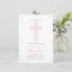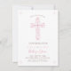 This modern confirmation invite features an elegant drawn pink and white floral cross. Ideal for a girl's religious celebration, it can be customised with your child's name and the event details. The background colour can also be changed to your liking.