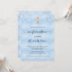 For a confirmation, celebrating a boy. A blue faux metallic looking background. Decorated with blue faux glitter dust. Personalise and add the name and details. The name and confirmation are written with a hand lettered style script