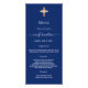 Confirmation reception menu card. Personalise and add a name, date and the menu. A navy blue backgroudn, white text. A faux gold cross.