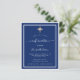A modern, elegant and invitation. A navy blue background decorated with white frames and a golden cross. Personalise and add a name and details. White text.