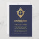 Confirmation Navy Blue Elegant Faux Gold Crest Boy Invitation