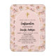 An arch frame on a pattern of pampas grass and pink flowers and a golden cross. Personalise and add a name and details.