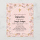 An arch frame on a pattern of pampas grass and pink flowers and a golden cross. Personalise and add a name and details.