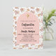 An arch frame on a pattern of pampas grass and pink flowers and a golden cross. Personalise and add a name and details.
