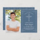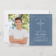 This elegant and classic confirmation invitation features a drawn white cross with a matching detailed border. The example is shown in blue, but the background colour can be customised to your liking (click customise further and select the box). There is also a photo area where you can add a picture of your child. Perfect for your special religious occasion, the text can also be personalised for your event.