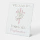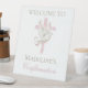 It is sturdy than I expected. Was worried about the material being flimsy but it is not. It is printed on some sort of plastic material. It should serve well at our wedding as long as wind isn’t too bad. Otherwise we will put some paper weights behind it and should be fine.