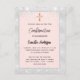 Faux silver metallic and blush, rose gold coloured background decorated with faux silver glitter dust. Personalise and add a name and the details. Black coloured letters.