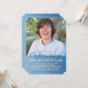 Your favourite photo is overlaid by a blue, gradient, transparent, panel that holds your personalisation. The words "confirmation of" can be dragged to any location, made larger or smaller (+-) or eliminated making this a versatile invitation.