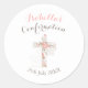Elegant classic round confirmation sticker for girls with a floral cross on a white background. Personalise with name, text and date.